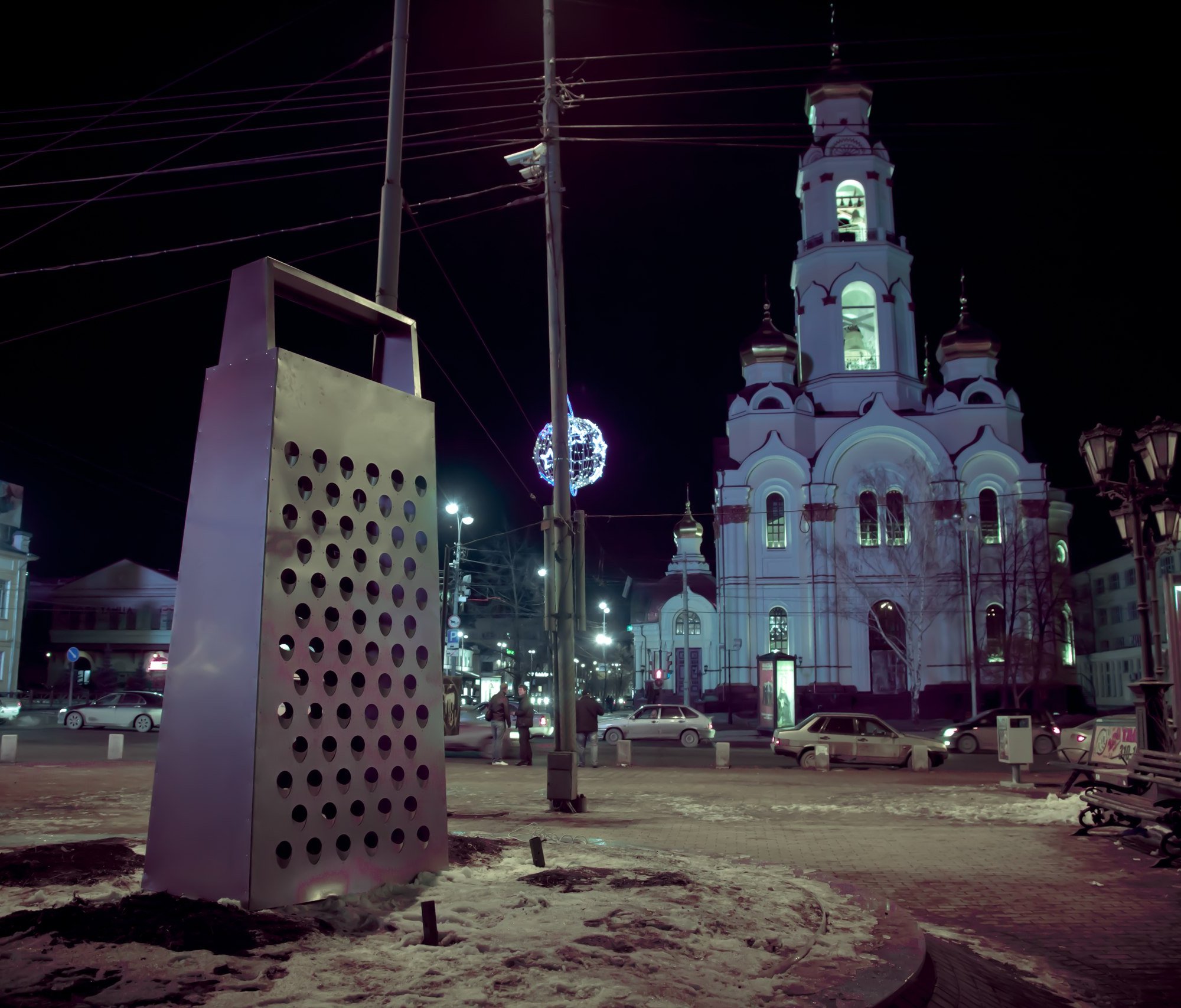 В минувшие выходные, в ночь на 1 апреля, в Екатеринбурге была установлена гигантская тёрка. Необычный арт-объект занимает место новогодней ели, которую традиционно устанавливают на перекрестке улиц Малышева и 8 Марта, в самом центре города.