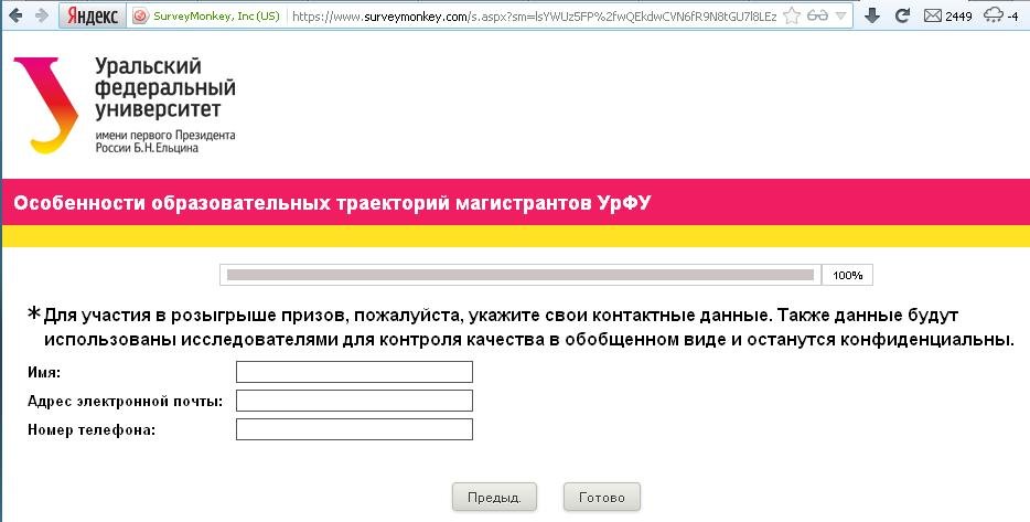 магистрантов УрФУ проводится на специальном портале для подобных исследований surveymonkey.com. Ссылки и призывы принять участие в исследовании можно найти в профкома студентов УрФУ в соцсети «ВКонтакте», ИА «Политсовет».