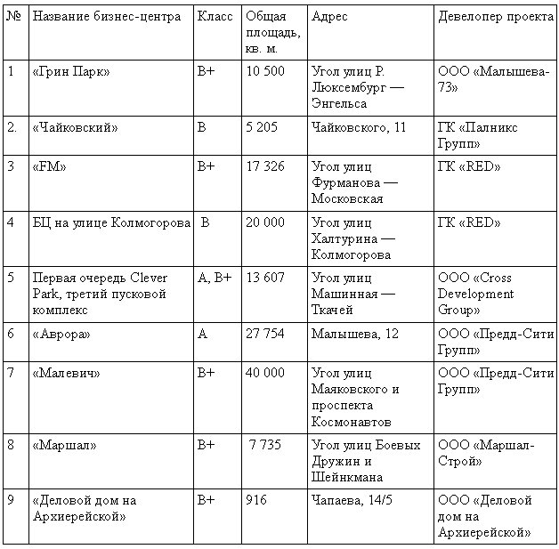 Таблица составлена по материалам круглого стола «Ввод новых офисных центров»