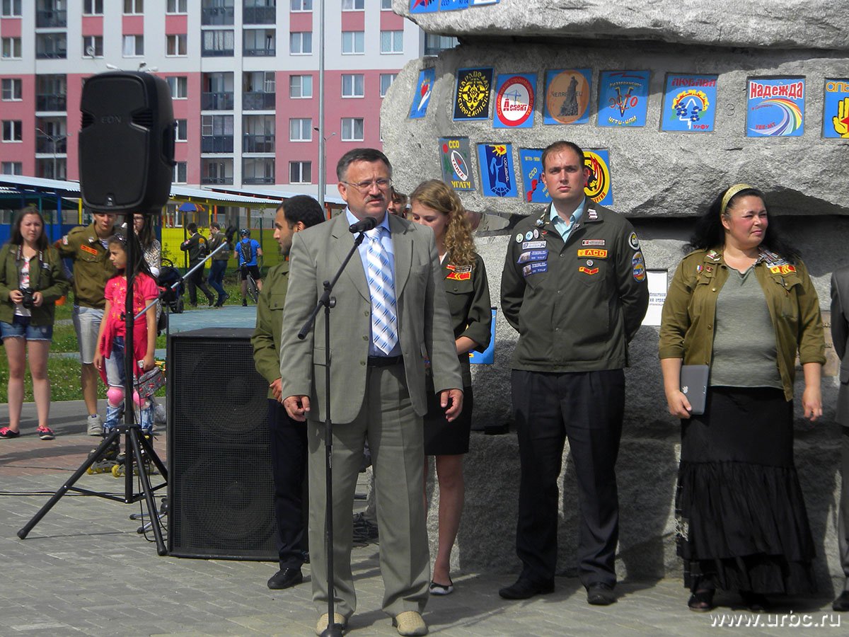 Вчера в районе Академический состоялось открытие пятой всероссийской студенческой стройки. Торжественная линейка прошла в Пятом квартале у каменного знака, который возвели в районе в прошлом году. Скульптуру установили в честь самих бойцов студенческих стройотрядов (ССО).