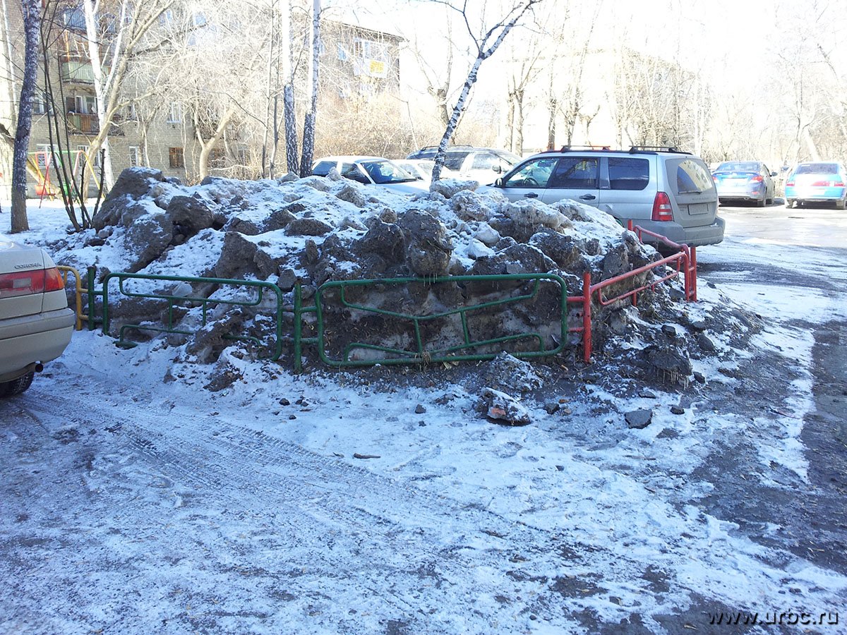 Горы обледенелого снега сейчас можно увидеть во многих дворах