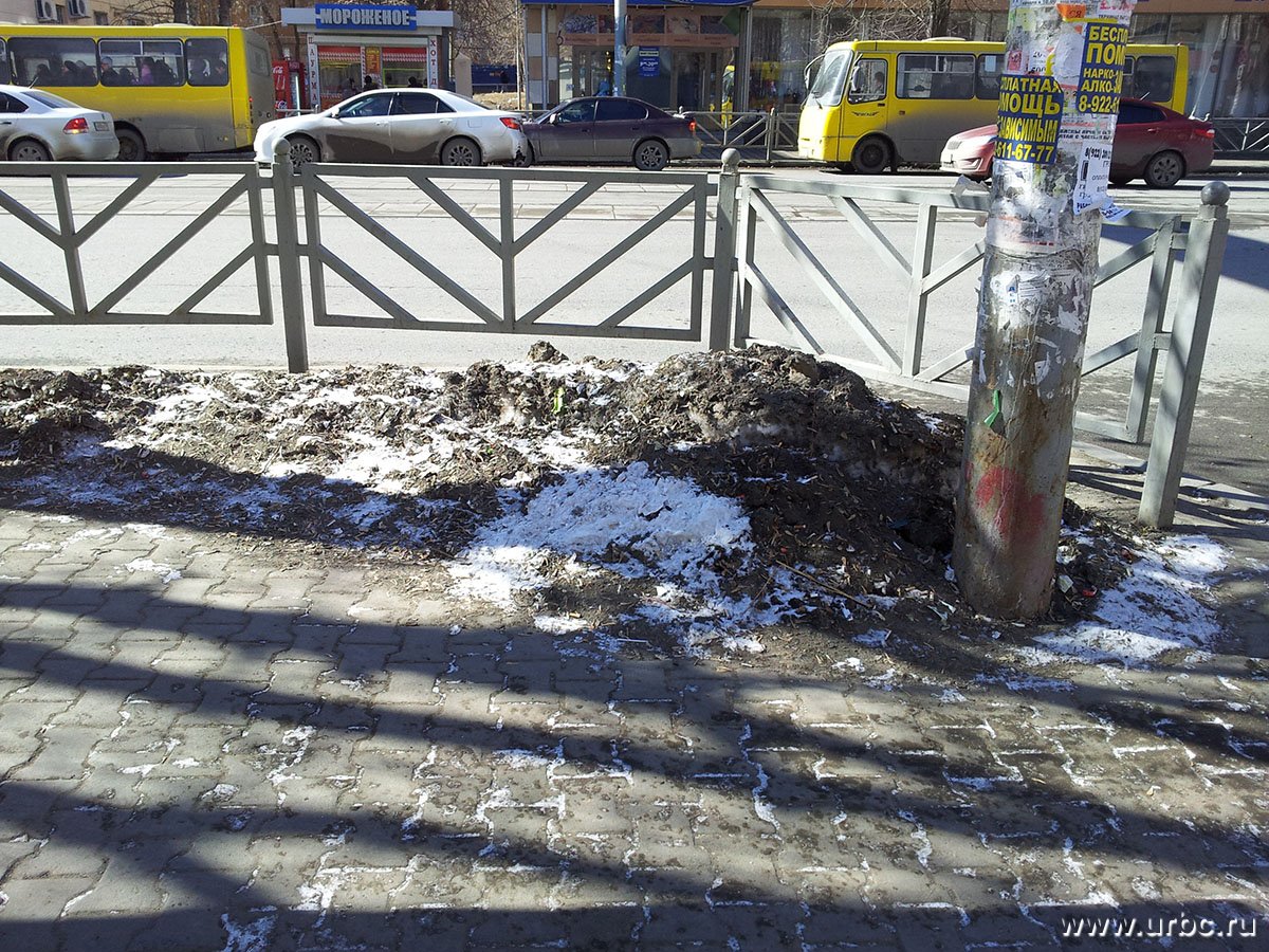 В четверг, 26 марта, комитет благоустройства администрации Екатеринбурга проверил качество уборки дорог, тротуаров и газонов от мусора и грязи Чкаловского района.