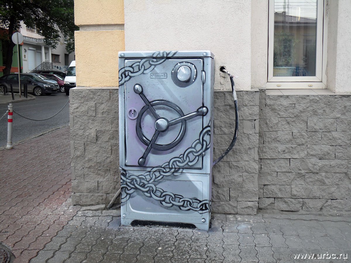Стоит отметить, что в этом году в качестве объектов стрит-арта были выбраны новые и нестандартные поверхности, в частности, одна из работ художника Ивана «Ягода» под названием «Сейф» была выполнена на уличной будке-коммуникаторе.