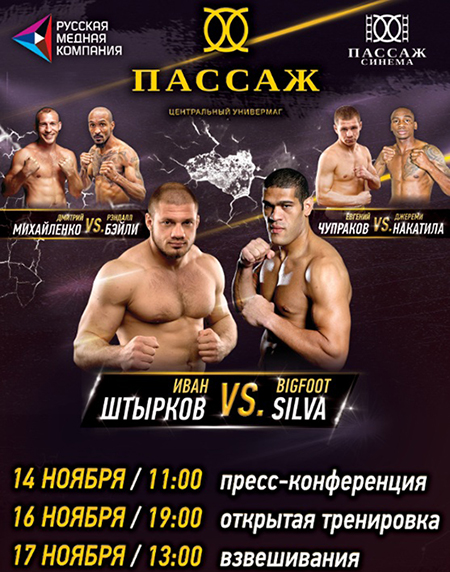 УрБК, Москва, 03.11.2016. В Екатеринбурге в универмаге «Пассаж» пройдет взвешивание и открытая тренировка борцов ММА Ивана Штыркова и Антонио Сильвы. Об этом сообщает пресс-служба «Общества Малышева 73».