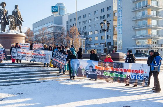 В прошедшие выходные в Екатеринбурге состоялся митинг дольщиков «Первого Николаевского». Они протестовали против УЭСК и Сбербанка, который должен был финансировать строительство. Согласно проектной декларации, первую очередь жилого комплекса (25-этажный и 14-этажный дома) должны были сдать в эксплуатацию во II квартале 2015 года. Однако работы до сих пор не завершены.