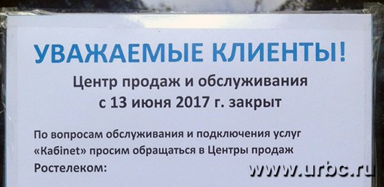 Клиентам предлагают обратиться в другие центры продаж Ростелекома, которых в Екатеринбурге осталось четыре: в районе Южного автовокзала, главного корпуса УрФУ, в микрорайоне Академический и на Уралмаше.