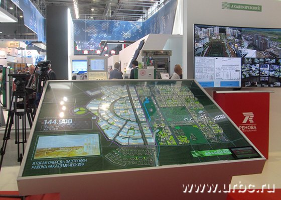 На стенде компании «Ренова» президенту представили проект дальнейшего развития жилого района Академический в Екатеринбурге. В настоящее время здесь проживают 45 тыс. человек, в перспективе — до 325 тыс. жителей.