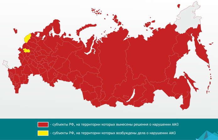 По данным ФАС России, антиконкурентные соглашения распространяются практически на все фармацевтические группы лекарственных препаратов, а также практически на все виды изделий медицинского назначения. При этом нарушения антимонопольного законодательства в сфере закупок зафиксированы практически на территории всей страны, кроме Чукотки и Крыма.