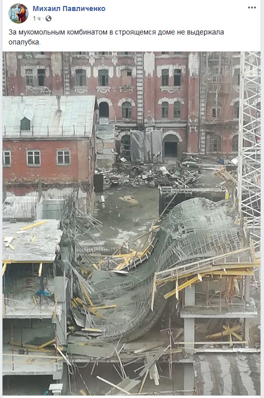 «За мукомольным комбинатом в строящемся доме не выдержала опалубка», — рассказал в своем сообщении в Facebook житель Екатеринбурга Михаил Павличенко.
