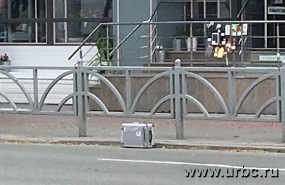 Признаков эвакуации людей из здания не наблюдается. Однако, в центре оцепления находится серый чемодан.