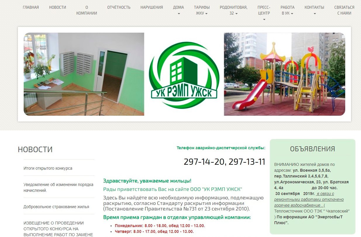 Скриншот с официального сайта ООО «УК РЭМП УЖСК»