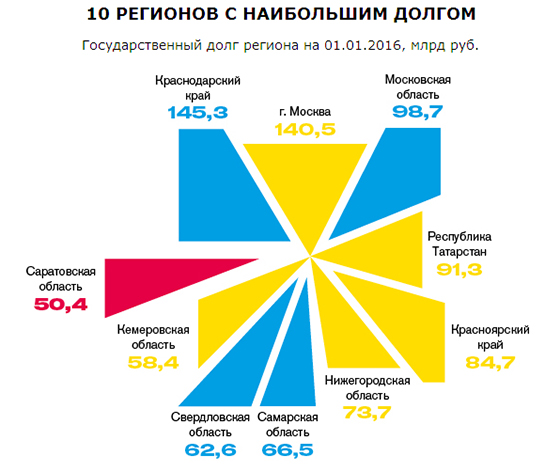 В целом количество регионов с дефицитом бюджета за указанный период выросло с 11 до 22. Общая сумма накопленного разрыва доходов и расходов составила 147 млрд руб.