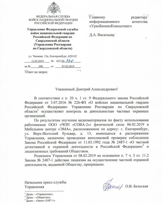 УрБК, Екатеринбург, 20.07.2020. Сотрудник ЧОП «Сова-4» предстанет перед судом за совершение действий, выходящих за пределы полномочий.