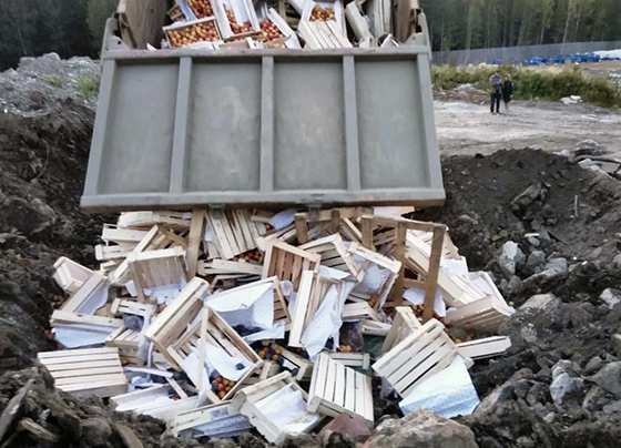 Изъятые фрукты были раздавлены тяжелой техникой в соответствии с правилами и нормами, предусмотренными законодательством РФ в области охраны окружающей среды.