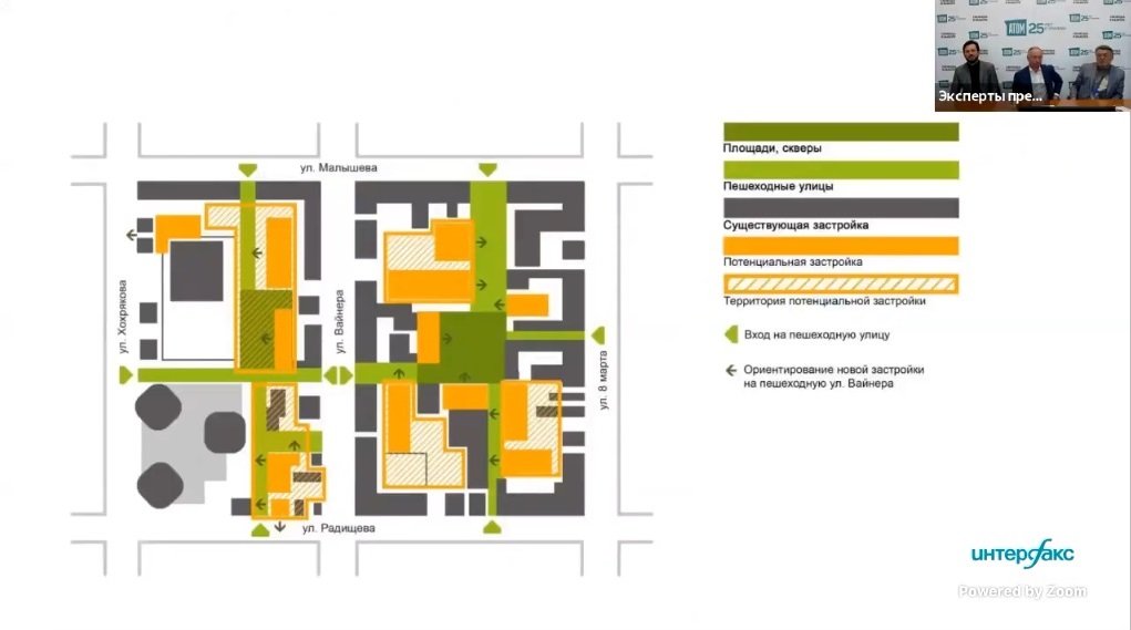 «Если мы посмотрим на центральные кварталы города, а их более 30, то они обладают схожими параметрами. Везде периметр сформирован исторически сложившейся застройкой, памятниками архитектуры. Основные улицы города сформированы. А внутри этих кварталов осталась стихийная застройка — размытая, деградировавшая архитектурная ткань. И если посмотреть на нее как на потенциал развития, мы увидим, что кварталы могут быть развиты так, что пространство города может быть увеличено условно в два раза», — добавил Н. Демидов.