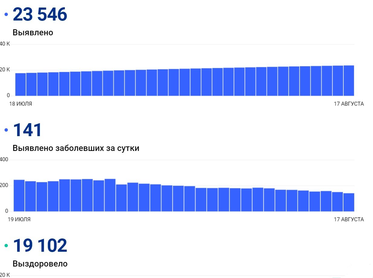 К настоящему времени общее число пациентов, умерших во время пандемии от последствий COVID-19, составило 374 человека. Официально выздоровели 19 тыс. 102 человека.