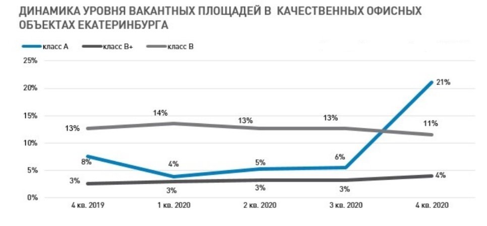 Эксперты отмечают, что в Екатеринбурге продолжается кризис качественного развития рынка деловой недвижимости города, который начался еще в 2014 году. В этом смысле 2020 год не привнес никаких кардинальных изменений.