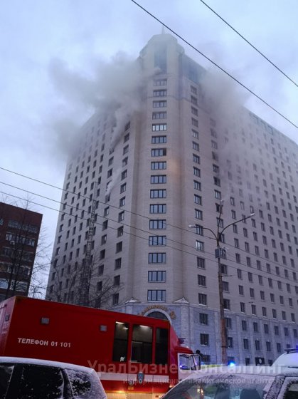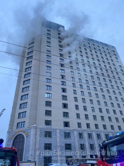УрБК, Екатеринбург, 08.02.2021. Прокуратура начала проверку по факту пожара в БЦ «Малышева, 83» в Екатеринбурге, где пострадали два человека. Наиболее вероятной причиной возгорания является короткое замыкание в электрощитовой.