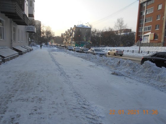 Во время повторного осмотра этой территории спустя два дня инспектор обнаружил, что снег частично вывезен с тротуара УК «Ремстройкомплекс». При этом был обнаружен в заездном «кармане» снежный вал.