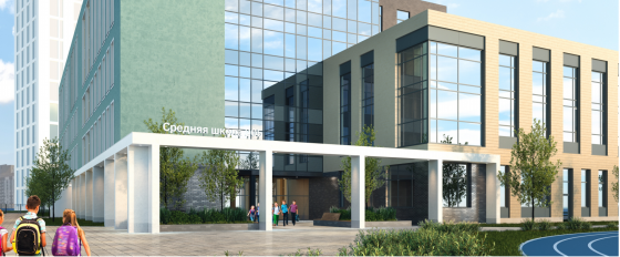 «Например, входные группы планируется выполнить в виде аркады с подсветкой. Данная конструкция визуально объединит два входа — в крыло начальной школы и в блок средней и старшей школы», — заявила Е. Спирина.