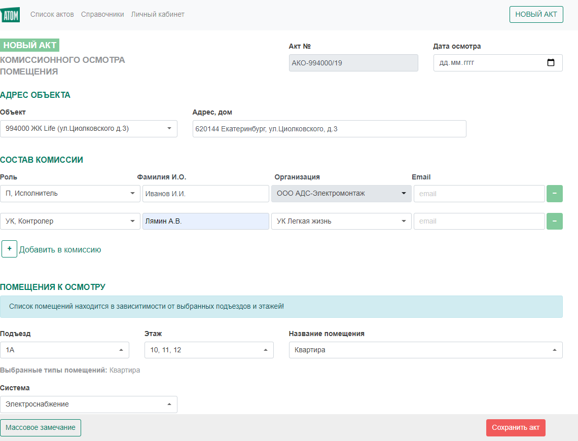 «Пробой пера» стала передача ЖК LIVE управляющей компании «Легкая Жизнь». «Атомстройкомплекс» признал эксперимент удачным и теперь будет передавать все свои дома в таком формате. Таким образом, у застройщика, подрядчиков и обслуживающих организаций будет общая база данных по каждому объекту. Это позволит сформировать единый отчет о ходе приемки и статусе каждого помещения. Еще с помощью базы данных можно будет контролировать выполнение задач по устранению дефектов. Раньше это приходилось делать в ручном режиме; учет данных управляющих компаний, подрядчиков и застройщика велся обособленно. В перспективе пользоваться сервисом смогут и будущие жильцы при приемке своих квартир.