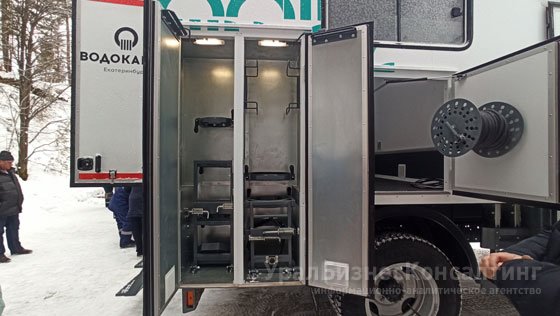 Предусмотрена и особая АРМ для ремонтных бригад, которые работают в канализационных колодцах. Здесь в кузове есть не только лебедка, которая может поднять до 500 кг грузов, верстак с тисками и место для шанцевых инструментов, но и специальный сушильный шкаф для одежды и обуви, чтобы рабочие между вызовами могли привести в порядок рабочую одежду.
