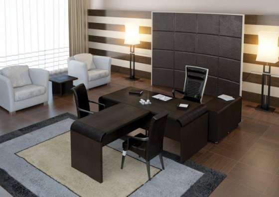 Окружающая обстановка напрямую влияет на мозговую деятельность, работоспособность, концентрацию. Директор крупного предприятия должен иметь письменный стол для руководителя, комфортное кресло, место для приема посетителей и систему хранения в своем кабинете.