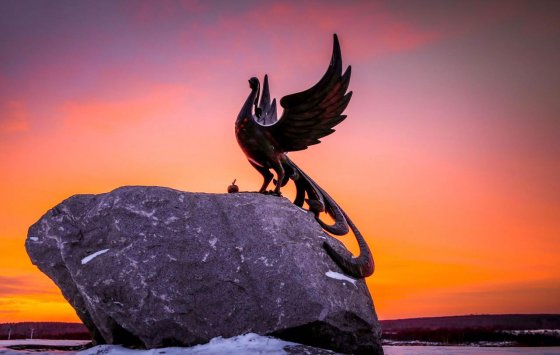 Необычный арт-объект находится на одном из холмов Преображенского парка. Птица стала символом исполнения самых искренних желаний для жителей и гостей района. Она изготовлена из бронзы, инкрустирована натуральным сердоликом, который ассоциируется с жизнью и солнцем. Арт-объект был открыт 8 июля 2020 года в День семьи, любви и верности.
