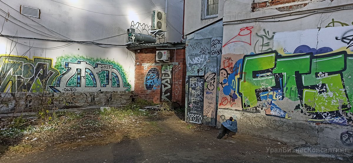Еще одна претензия заключается в пренебрежении проблемами всего квартала. На территории в границах улиц Малышева — 8 Марта — Вайнера — Радищева представлена хаотичная застройка, обветшавшие здания, большое число непривлекательных граффити и торчащие повсюду провода от кондиционеров. Также здесь практически отсутствуют пешеходные дорожки и элементы благоустройства.