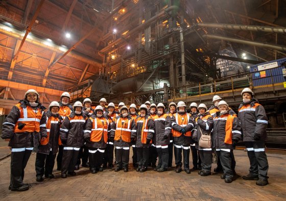 Далее тур проходил на площадке доменной печи № 7, где можно было наблюдать за выпуском чугуна, пультом управления домной, а также узнать об особенностях работы системы аспирации, газоочистки и рукавных фильтров.