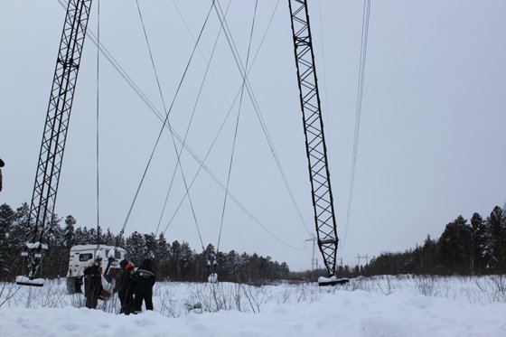Отметим, что трасса ЛЭП проходит по заболоченной и труднодоступной местности, поэтому работы проводятся при отрицательных температурах после промерзания грунта в пройме реки Ватинский Еган, правого притока Оби. В работах задействована спецтехника повышенной проходимости, в том числе МТЛБ (многоцелевой транспортер-тягач легкий бронированный), Камаз-вахта высокой проходимости, ТРЭКОЛ (внедорожник большой грузоподъемности).