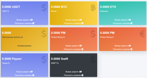 Сориентировавшись, пополняем депозит с помощью электронных или криптокошельков, а также SWIFT-перевода.