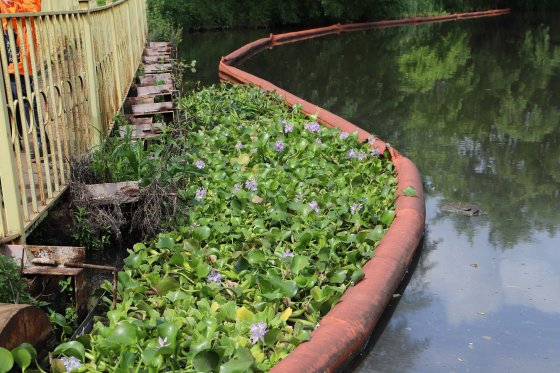 УрБК, Екатеринбург, 09.06.2023. Экологи ЕВРАЗ НТМК высадили в прудок-осветлитель комбината на реке Вязовке высшие растения, которые очищают воду. В водоеме появилось 100 корней эйхорнии и 500 кустов пистии, сообщает региональный центр корпоративных отношений «Урал» горно-металлургического холдинга.
