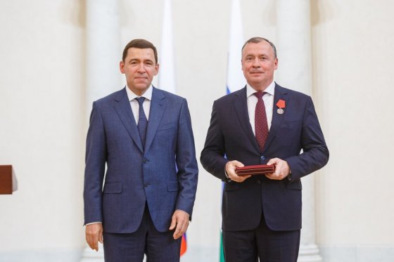 Глава Екатеринбурга Алексей Орлов получил из рук свердловского губернатора Евгения Куйвашева Почетную грамоту президента РФ