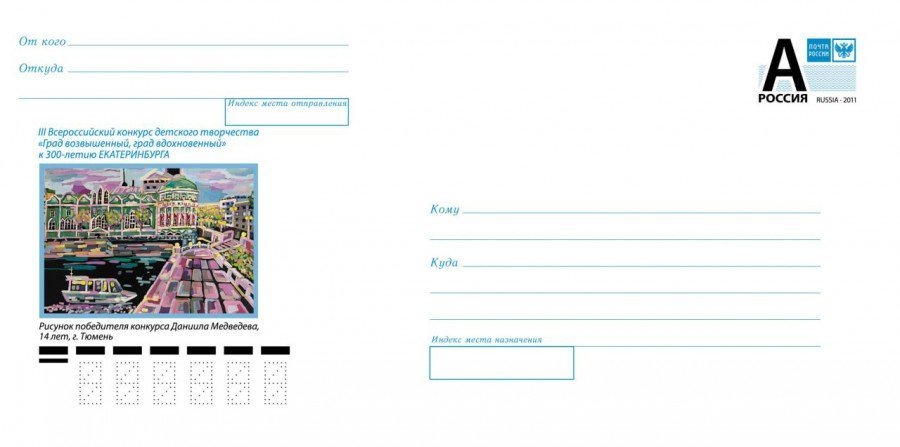 Также в церемонии принял участие школьник из Тюмени Даниил Медведев, который нарисовал будущую иллюстрацию памятного конверта в рамках конкурса «Град возвышенный, град вдохновенный». Зарисовка, которая получила название «Наше лето на Плотинке», стала основой памятного конверта, выпущенного тиражом в 200 тыс. экземпляров.