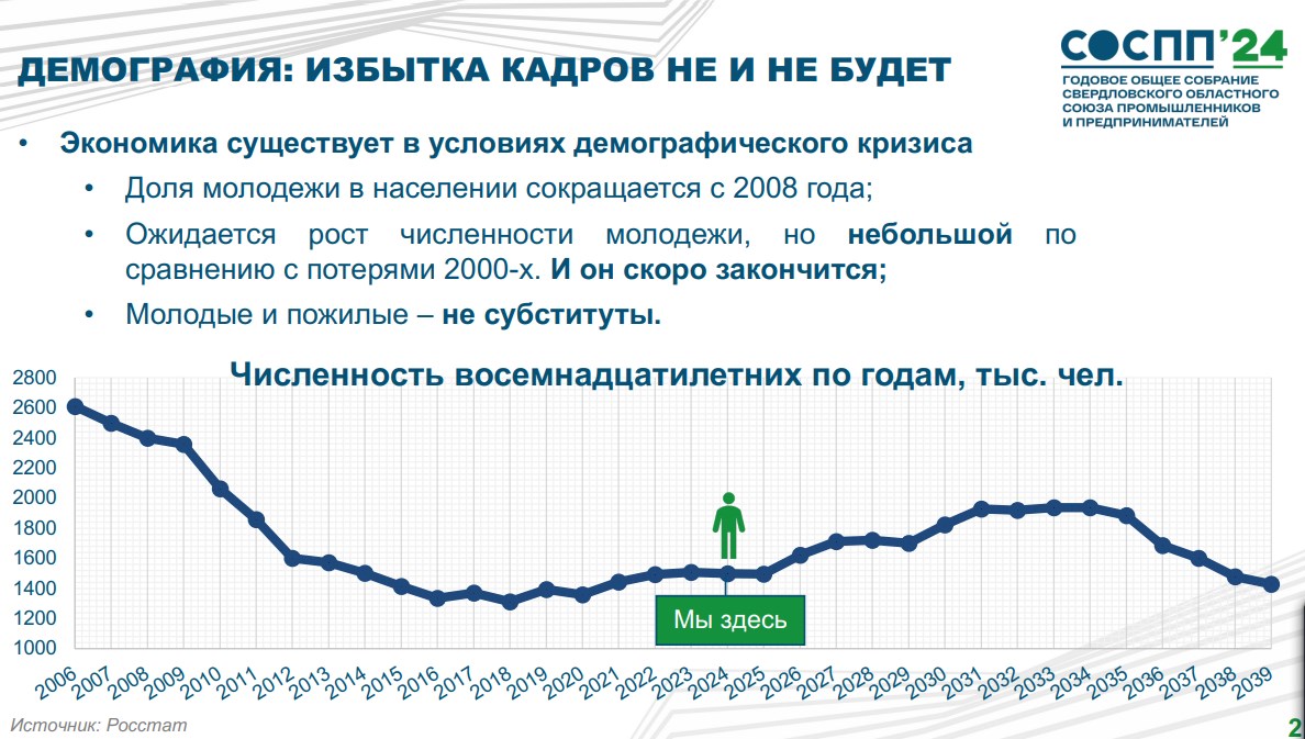 По его словам, дефицит кадров следует воспринимать как глобальное изменение всей экономики, а не как временную проблему, имеющую варианты и сроки решения. «Люди становятся глобальным стратегическим ресурсом» , — подчеркнул эксперт.