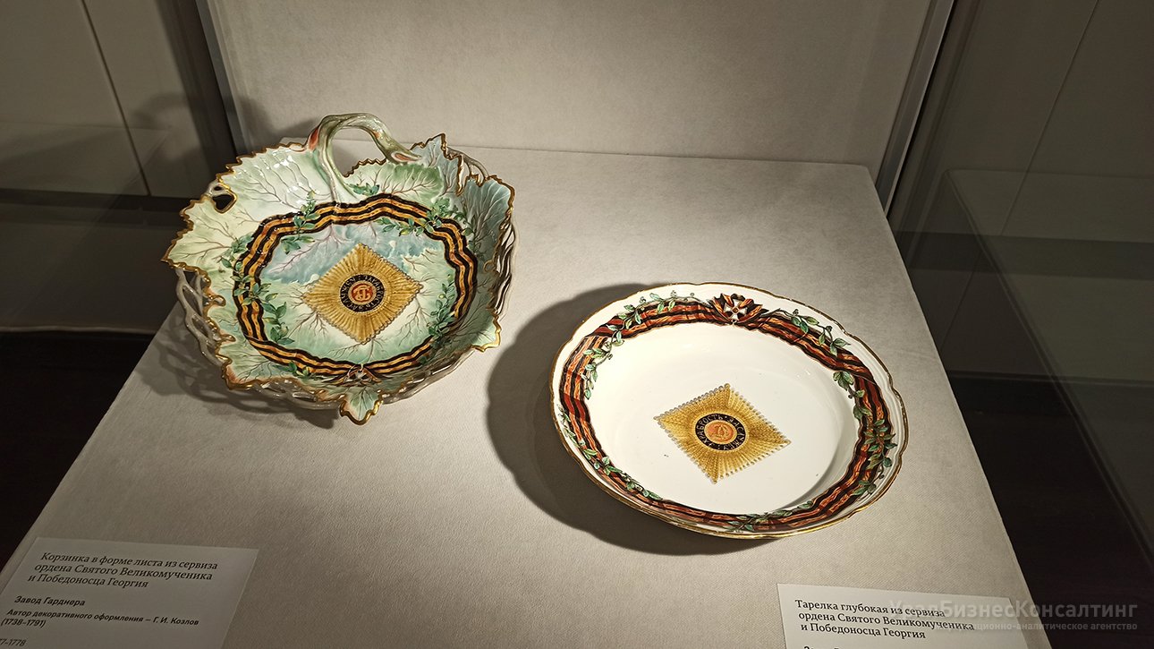 Изготовленные для торжественных событий первым частным фарфоровым заводом Франца Гарднера фарфоровые ансамбли получили название «орденские». Каждый предмет из четырех сервизов, созданных по заказу императрицы Екатерины II, имел характерный декор, включавший изображение ордена и орденской ленты.
