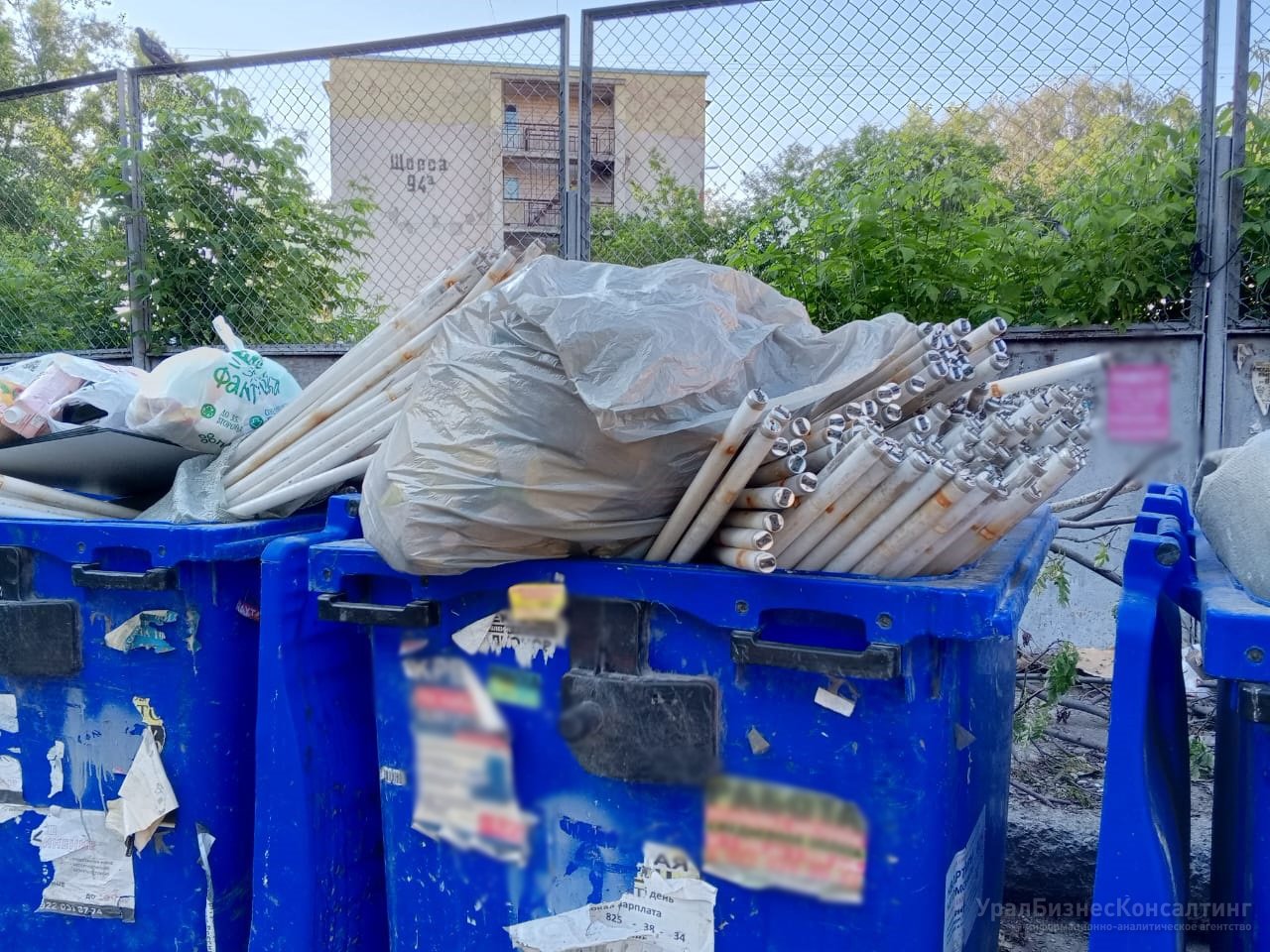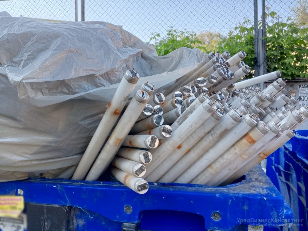 УрБК, Екатеринбург, 14.06.2024. В Екатеринбурге около Южного автовокзала местные жители обнаружили вчера вечером на контейнерной площадке десятки старых ртутных ламп. Сегодня не утилизированные должным образом отработанные элементы освещения были вывезены мусоровозом вместе с содержимым всех контейнеров, при этом часть из них была разбита в процессе погрузки.