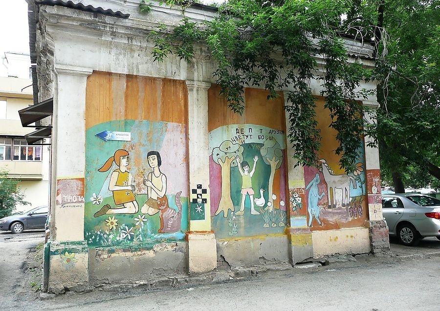 УрБК, Екатеринбург, 28.06.2024. Участники паблик-арт-программы «ЧО» (инициатор — строительная компания «Атомстройкомплекс») восстановят закрашенные коммунальными службами росписи андеграундного художника Старика Б.У. Кашкина во дворе дома № 5 на проспекте Ленина в Екатеринбурге. Об этом сообщила пресс-служба девелопера.