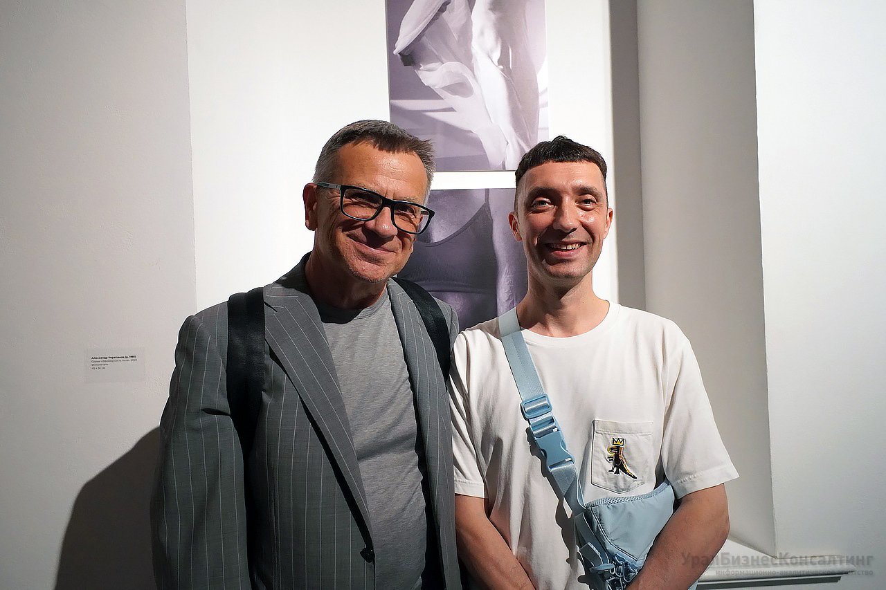 Советник президента Свердловского областного Союза промышленников и предпринимателей Михаил Черепанов и фотограф участник итоговой выставки «Школы кураторов» «Соломенное чучело» Александр Черепанов