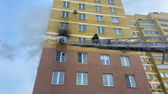 По данным ведомства, информация о возгорании поступила в 13.03 по местному времени. Горят квартира и балконы на 9-м и 10-м этажах. До прибытия пожарных из дома самостоятельно эвакуировались 30 человек.