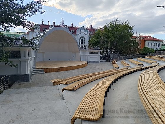 Кроме того, на площадке между Камерным театром и музеем «Литературная жизнь Урала XIX века» генподрядчик реконструировал деревянную беседку, где работал и отдыхал русский писатель Дмитрий Мамин-Сибиряк.