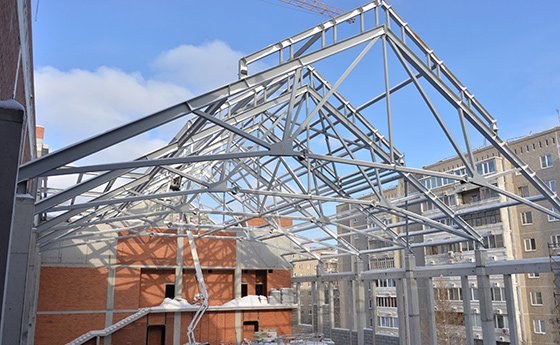«В спортивном ядре, расположенном во дворе школы, выполняется монтаж резинового покрытия. В основном здании идут чистовые отделочные работы, параллельно мы приступили к техническому оснащению пищеблока, который в этой школе занимает более 500 кв. м. Полностью выполнены работы по остеклению большого спортивного зала, ширина которого составляет 24 м, в кровле на разных уровнях установлены зенитные фонари», — рассказал руководитель проектов ГК «Атомстройкомплекс» Александр Мордвинов.