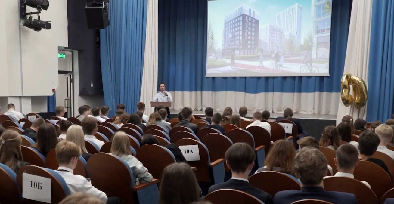 Строительный холдинг давно проводит профориентацию в школе № 181. В этом году перед учениками старшей школы выступал архитектор проектного института «Атом» Андрей Шушлебин. Он рассказал подросткам о создании архитектурных проектов, о качествах будущего специалиста и длительности учебы. Компания участвует в федеральной программе «Профессионалитет» и заключает с абитуриентами договоры о целевом обучении.