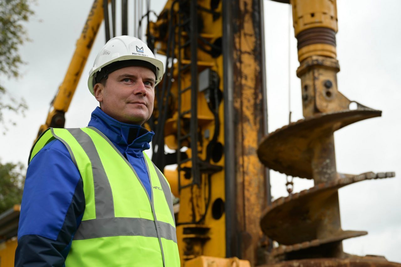 Старт работам на площадке вблизи села Логиново был дан с запуска буровой установки. Она устанавливает буронабивные сваи, которые станут надежным фундаментом для опор путепровода.