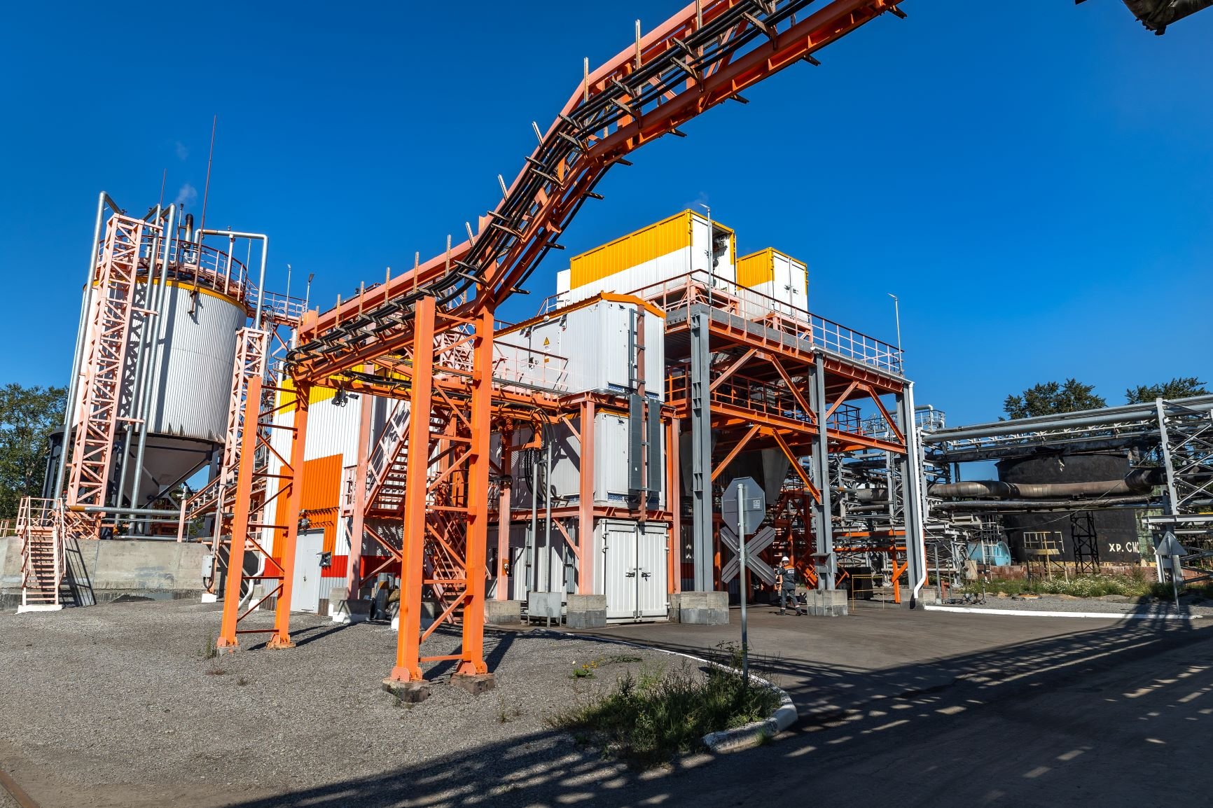 Также в рамках проекта введен в работу участок дешламации каменноугольной смолы. Это полностью закрытый участок по подготовке и очистке смолы, которая будет поступать в два изолированных трикантера. После удаления шламов и воды из смолы методом перегонки будут производиться различные марки пеков.