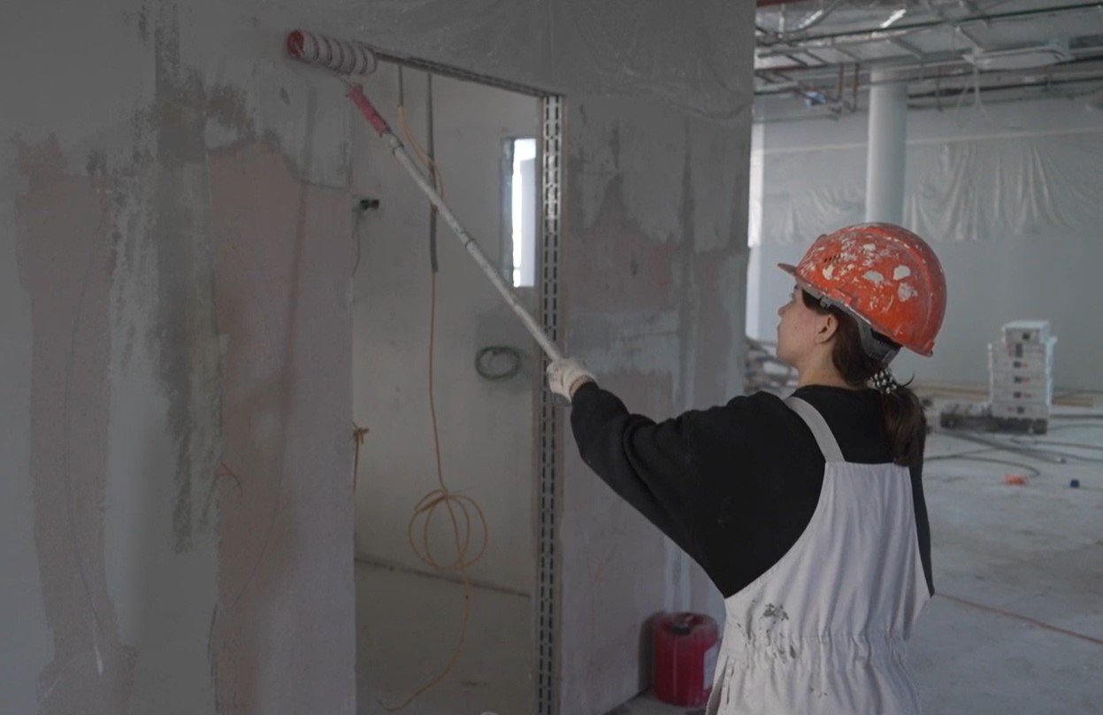 Руководитель проектов по развитию и обучению персонала Надежда Хромец рассказала, что было принято решение погрузить студентов в будущую профессию с самого начала обучения: мастера показали своим будущим коллегам современные способы укладки плитки и отделочные материалы, а также познакомили с технологией оштукатуривания стен и устройством стяжки пола.