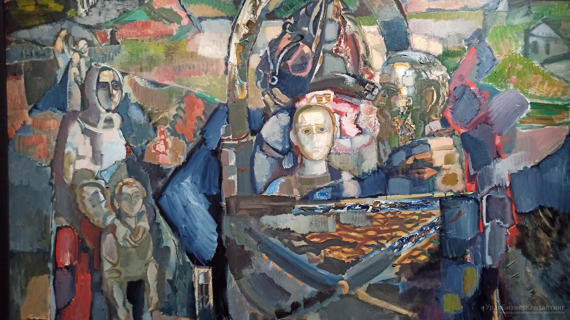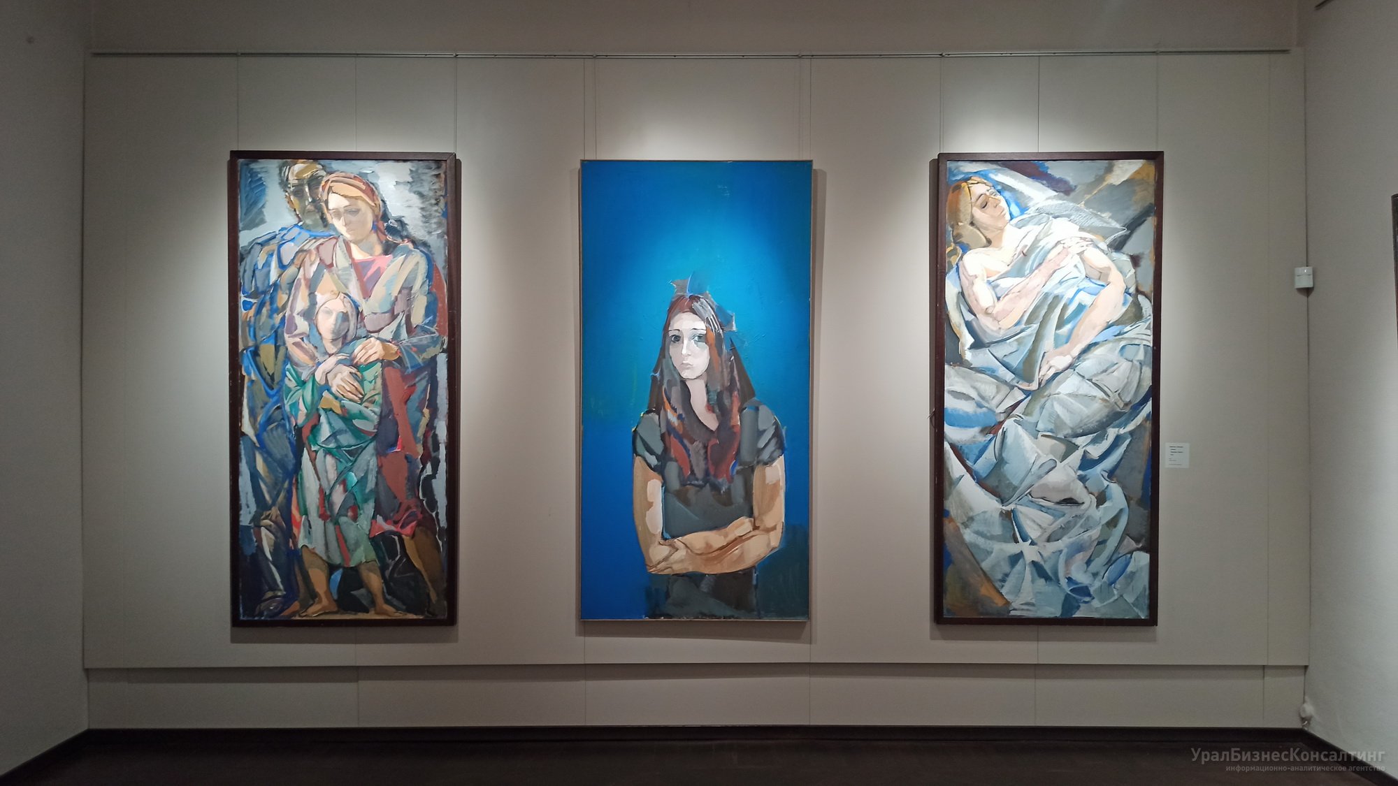 «Работы Калинина 1970–1980-х годов, приоткрывающие эпизоды его ранней биографии, написаны с характерным для того времени интересом к внутреннему миру человека, к эпической символике и метафоричности. Застывшие в пространстве персонажи погружены в раздумья и вызывают ассоциации с иконописными образами. Подчеркивает эту связь и живописная манера автора, напоминающая церковные витражи или врубелевские полотна», — отметила куратор выставки заведующая сектором отечественного искусства XX–XXI веков ЕМИИ Наталья Пономарева.