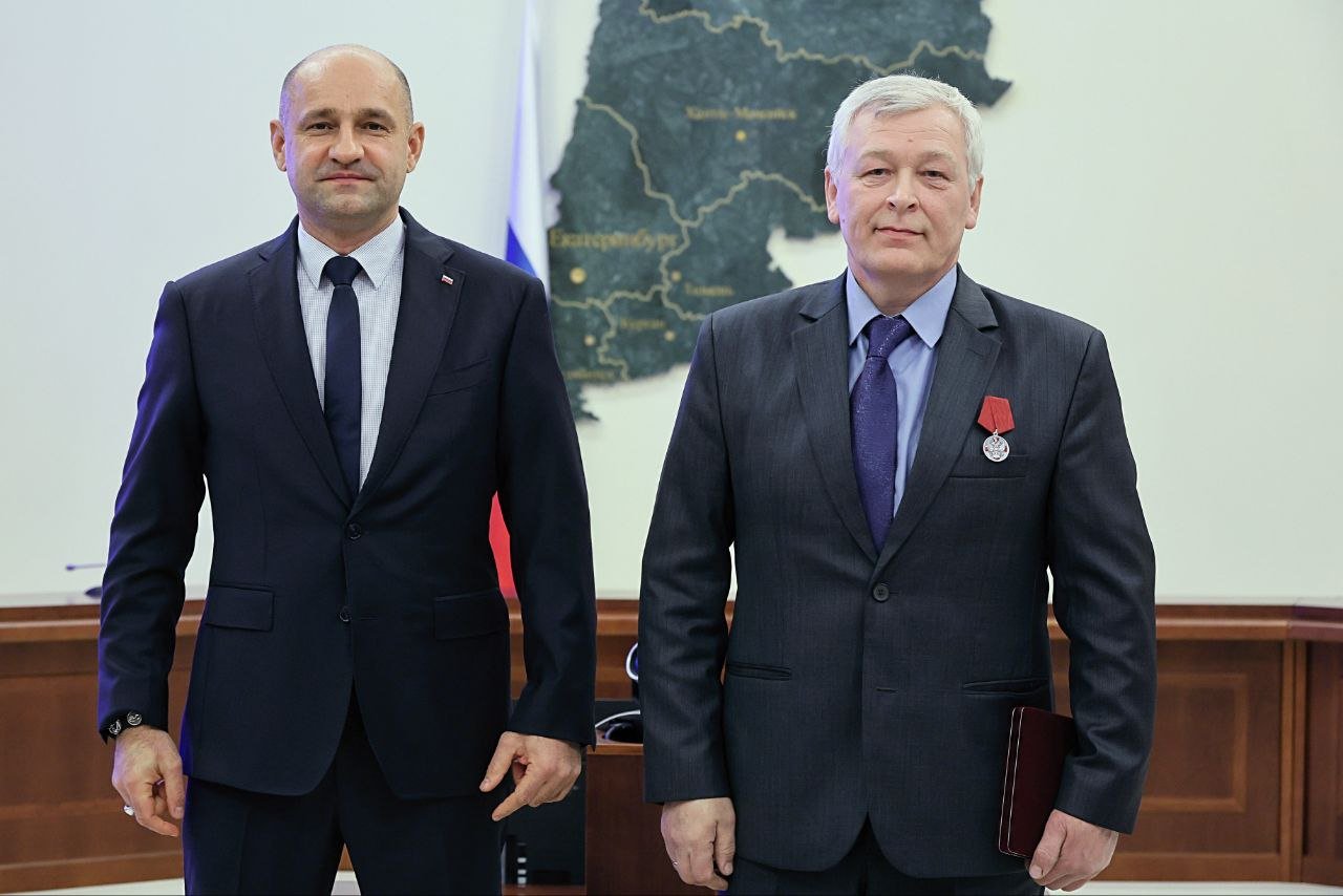 УрБК. Екатеринбург, 07.11.2025. Восемь сотрудников ЕВРАЗ НТМК награждены государственными знаками отличия. Указ о присвоении государственных наград подписал президент России Владимир Путин.
