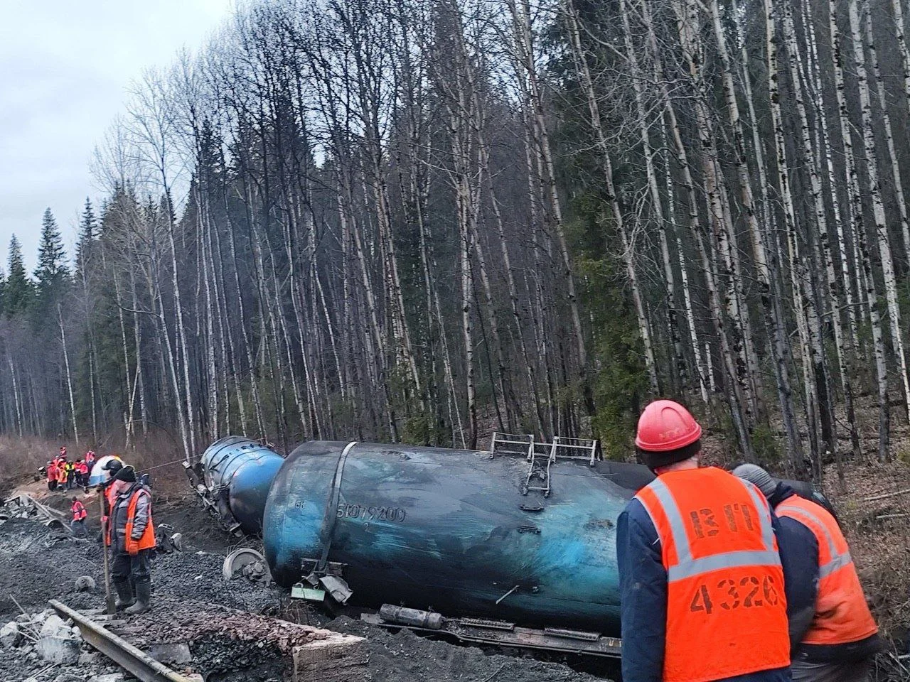 «В настоящее время шесть вагонов-цистерн убраны за габарит пути, произведен демонтаж поврежденной и ведется укладка новой рельсошпальной решетки. Экологической угрозы нет»,— сказано в сообщении.